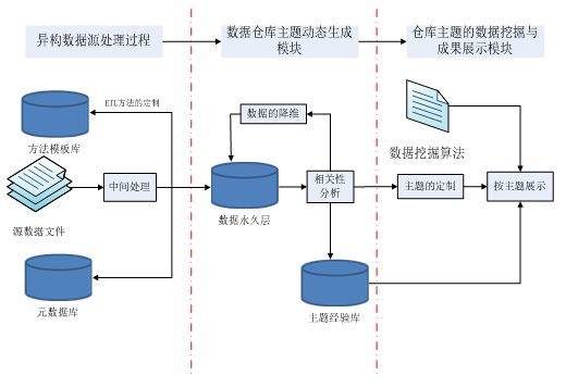 仓库主题的动态生成包含了两个很重要的领域专家操作,就是多维间相关性分析和数据主题的降维。可将常用主题事先定义,也可通过在可视化工具的帮助下以自选、对比等方式动态生成新的主题。