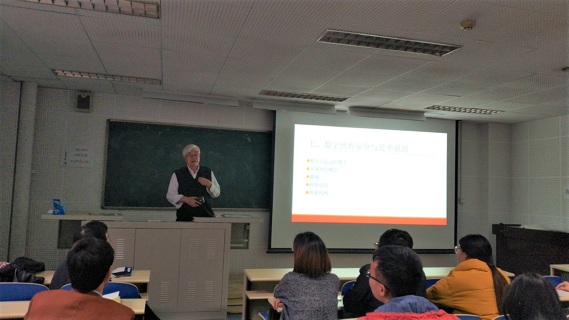 讲座伊始,吕教授便由人机系统(CIS)的概念引申扩展至新型的人类——数字人(ICIS),具体阐述了数字人的四个特点:可进入数字世界的能力、以网络为基础的数字生活、宽广的基础知识、社会联系巨大而复杂。随后提出了将来中国数字人人口大约维持在10的9次方左右,这么数量庞大的数字人通过计算机信息网络(CIN)组成数字世界(DW)。然后引出了本次讲座的重点,随着智能计算机的商品化,人的个性被标准化、共性化。与此同时,隐私便不再“隐私”,网络空间安全变得尤为重要。而“中国没有互联网”这一命题不得不被我们所重视。数字世界安全与近平原则的提出,就要求我们,大力发展中国的国域网,陆基民网的建设,推出网络安全法等措施,用以巩固与维护国家主权。