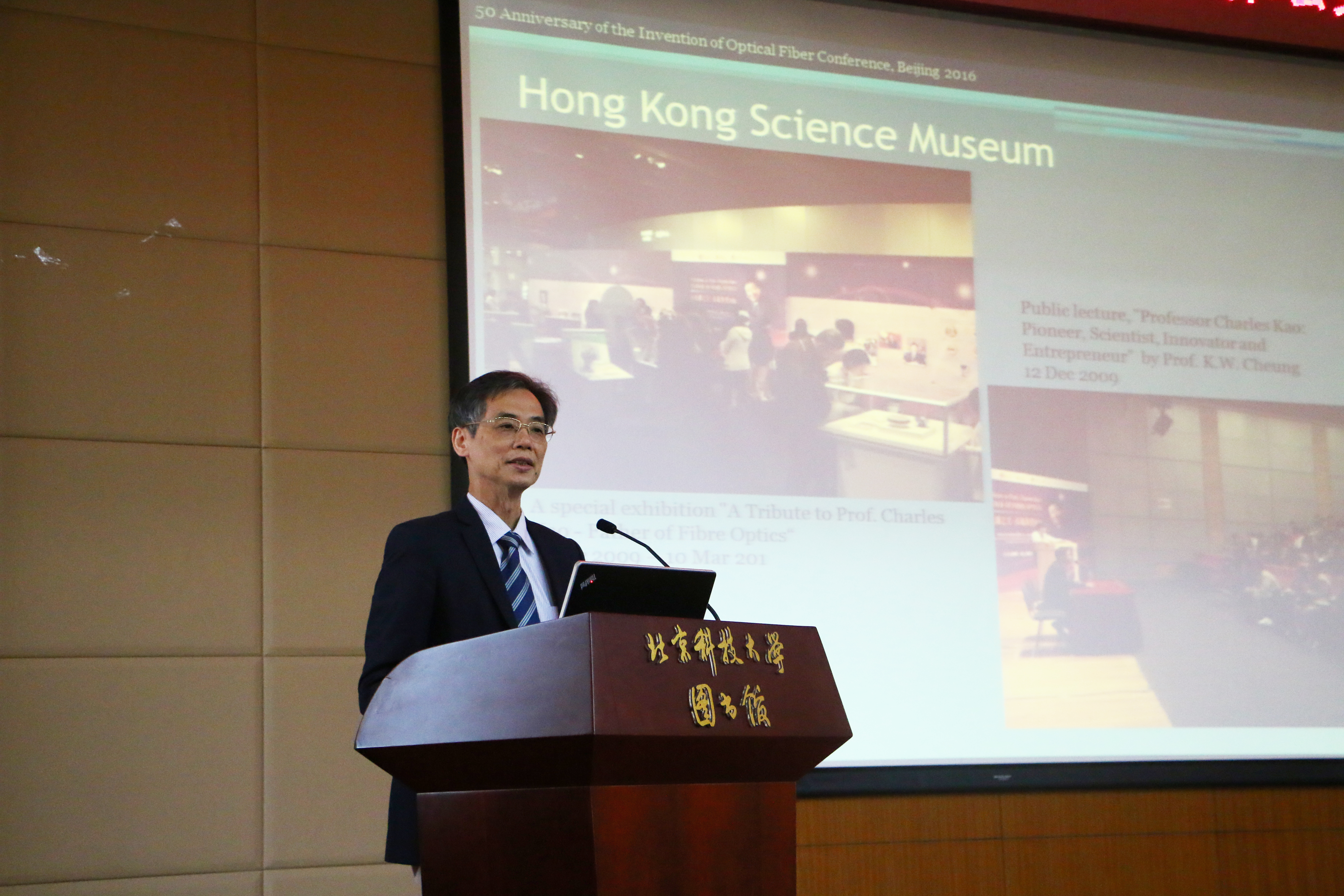 讲座自始至终在轻松的氛围下进行。陈亮光教授用回忆录的形式向同学们讲述了“光纤之父”高锟教授的生平事迹,包括他诺贝尔奖的获取,他对光纤通信研究和香港科技发展的影响,以及近年来返璞归真的生活。2016年是高锟教授发表推动光纤发展重要论文的50周年,高锟教授也因此被称作“光纤之父”并且获得了2009年的诺贝尔物理学奖。光纤在通信领域的使用大大推进了完成海量信息交换的高速互联网的发展,并促进了Google, Facebook及百度等巨型网络公司的诞生。报告最后陈亮光教授介绍了他所在课题组即高锟教授原所在课题组近期的研究情况。