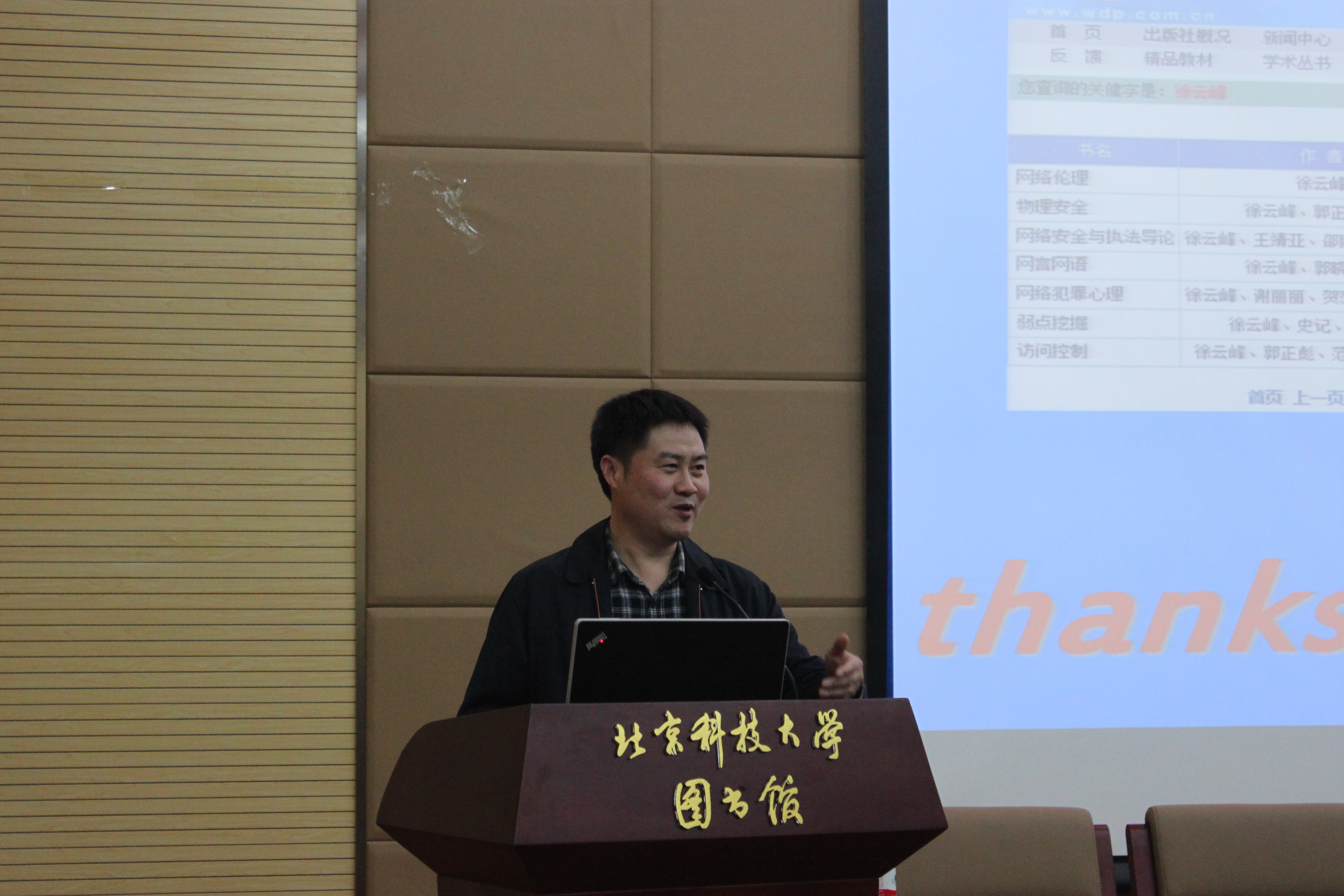 2014年10月23日晚7点,“计算机与通信前沿技术名家讲坛”第十五讲在图书馆报告厅举行。此次名家讲坛邀请到中国人民公安大学网络安全保卫学院院长徐云峰为大家解读当今信息时代网络安全的现状、发展及对策。徐云峰是国际高科技犯罪警察组织成员(HTCC)、国际信息系统安全认证专家(CISSP),十一届全国青联委员、中国计算机学会会员(CCF)、CCF安全专委会常务委员、公安部科技奖励评审委员会专业评审组资格委员、公安部网安局特聘信息安全专家、北京市公共安全科学技术学会副秘书长。历任网络案件侦查副大队大、大队长和副处长,曾挂任湖北省咸安区副区长和公安分局副局长。参与并指导侦破了“熊猫烧香”病毒等案千余起,曾获全国公安十大科技英才、全国公安系统二级英雄模范、湖北五四青年奖章金奖、全省政法英模、全省优秀公务员、省直十大杰出青年等荣誉称号。博彩评级网