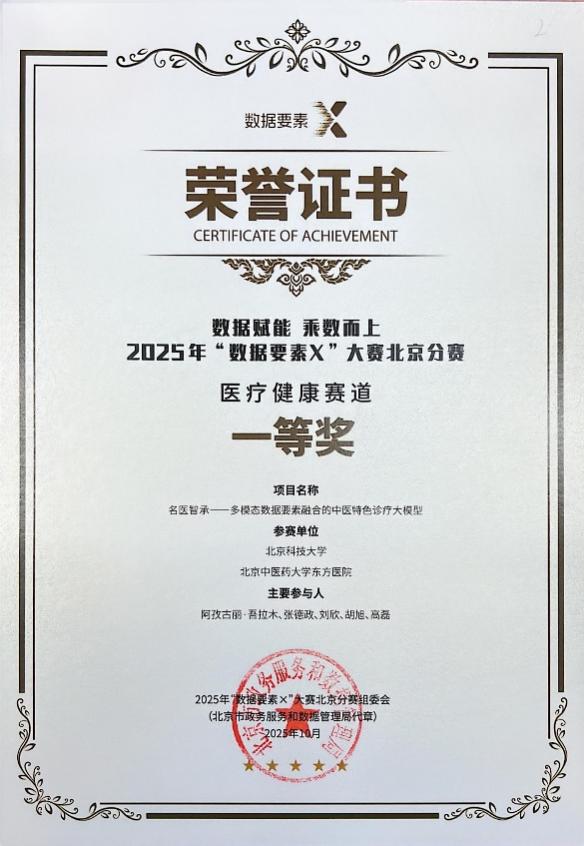 本次获奖是对团队以技术赋能传统医学、推动中医现代化发展理念的肯定。未来,团队将以此为契机,持续深化与北京中医药大学东方医院等诸多医疗机构的合作,进一步推动“名医智承大模型”的技术迭代与场景拓展,以数据要素驱动中医传承与创新发展,携手千年中医智慧,共同构建数智中医新生态,为国家中医药事业现代化、数字化发展贡献北科力量。