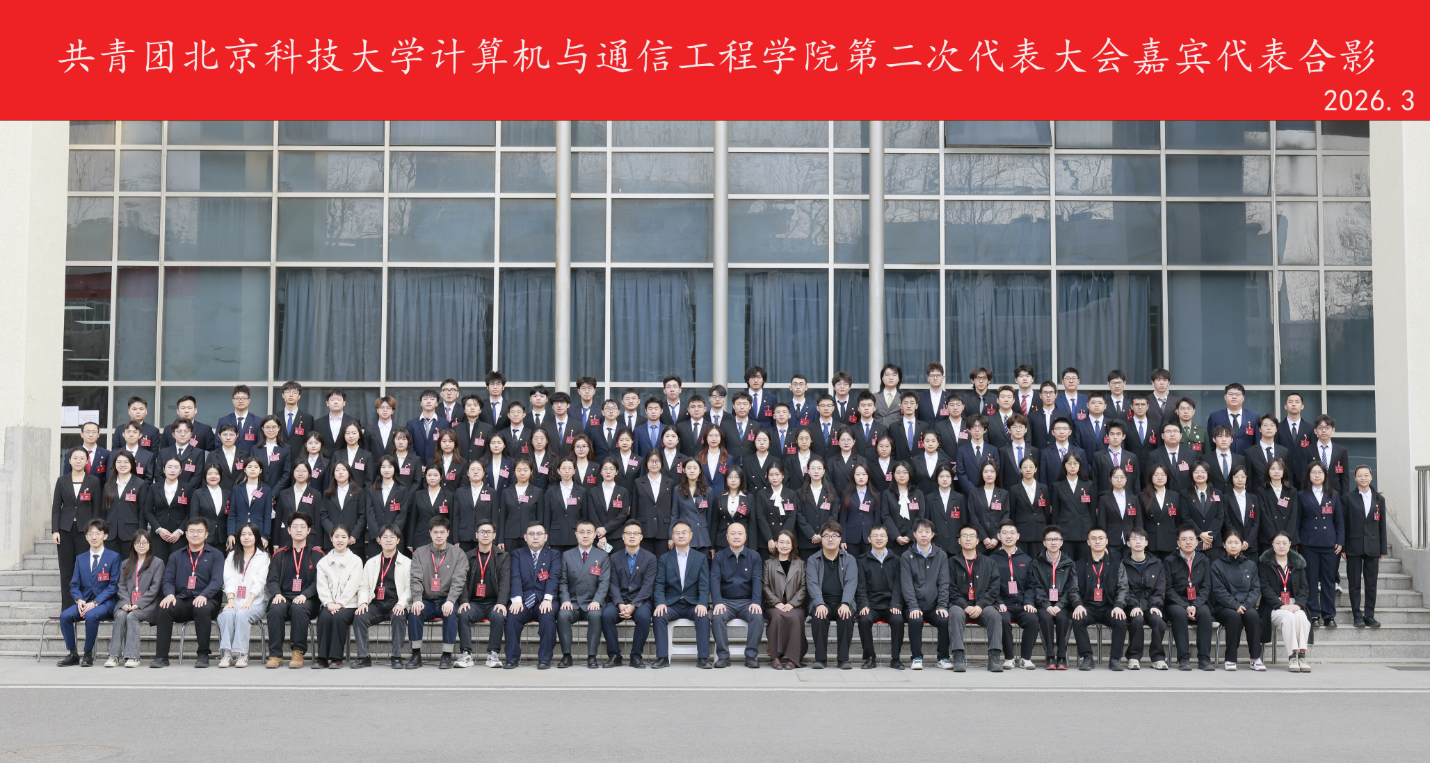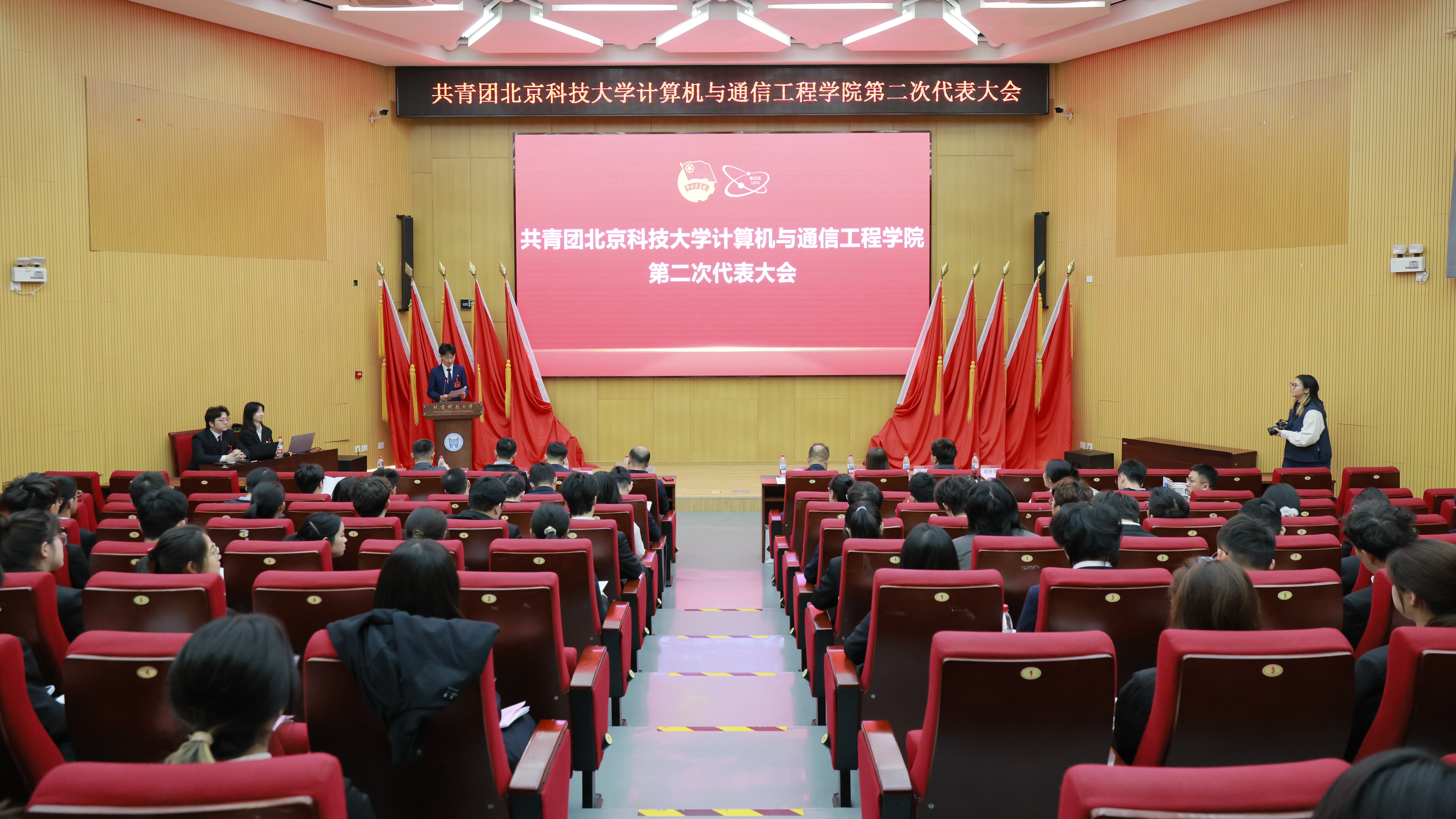 第二次代表大会在学术报告厅隆重召开。校团委书记王海波,学院党委书记张毅,党委副书记、副院长郝勇飞以及学院114名团员代表出席大会。大会还邀请了历届计通共青团工作负责人代表,现任未来城市学院党委副书记、副院长马力,科学技术研究院基础办主任耿晓光,沙河创新园区管理委员会综合办公室主任景旭浩,以及各兄弟单位团委负责人。