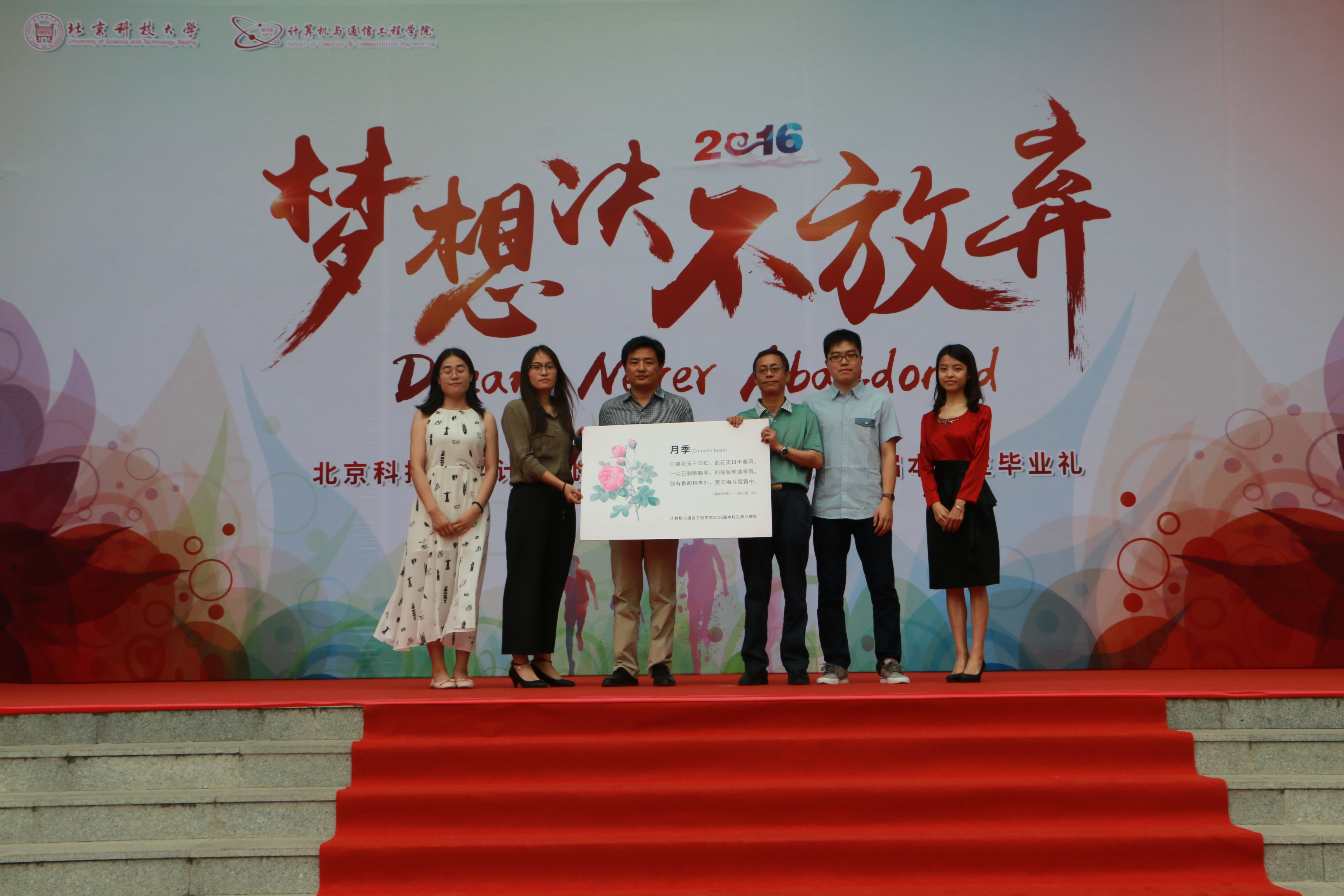 接下来毕业生代表带来了激昂澎湃的诗朗诵《永不放弃的梦想》,一句“厚德博学,求实创新,让计通的品格引领我们阅读这精彩的篇章;奋勇争先,追求卓越,让计通的精神在我们心中源源不断的流淌。”展现出367名同学在即将离开母校迈向社会的自信与风采。在朗诵的最后,同学们深情的喊出了“北科大计通人的价值应当跃动在无垠的国疆,因为这是我们“生于斯,长于斯”的地方!”