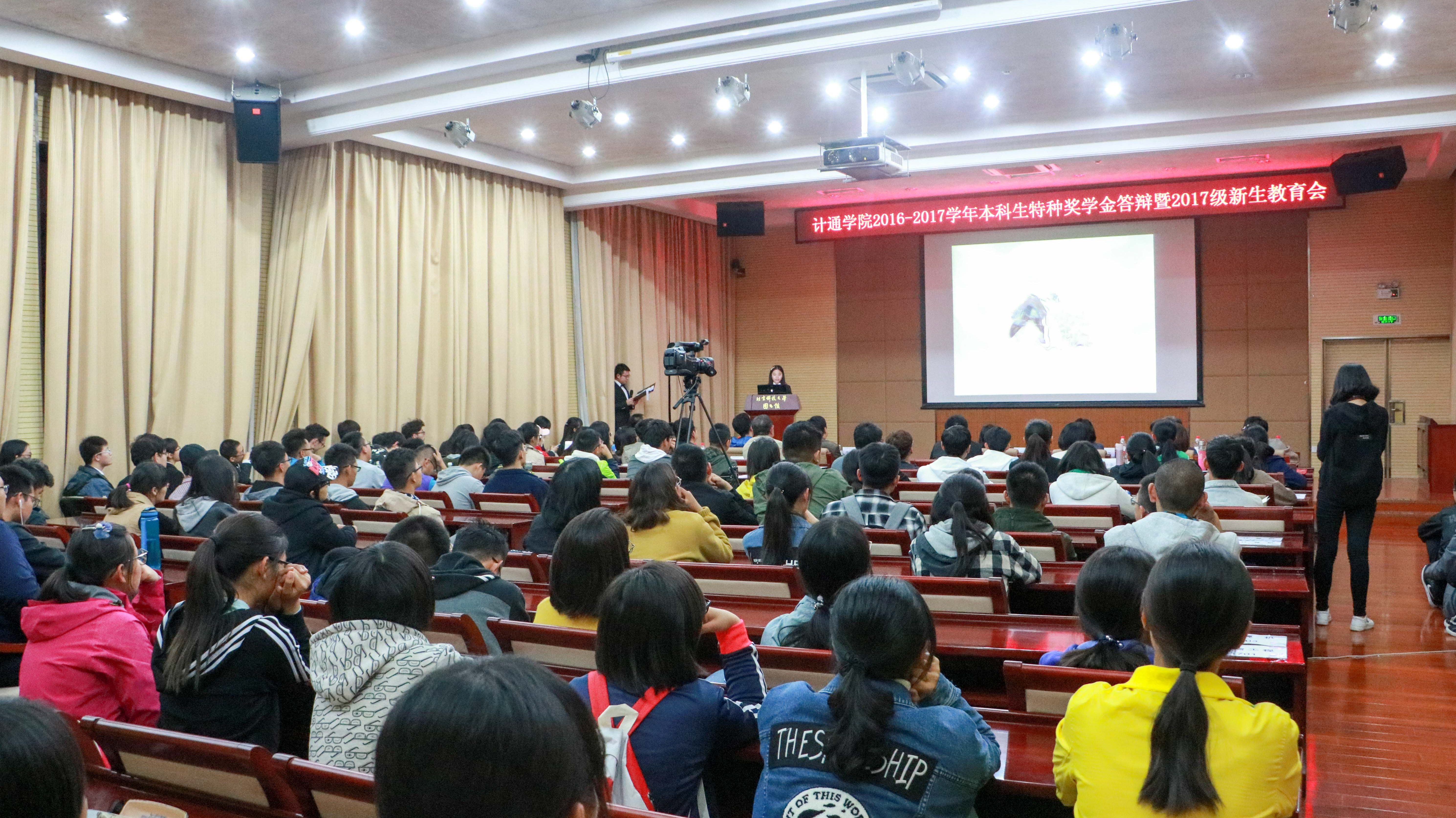 10月10日晚,学院2016-2017学年度本科生特种奖学金答辩暨新生教育活动在图书馆报告厅精彩上演。经过各专业年级初评推荐,来自计算机科学与技术、通信工程、物联网工程、信息安全等四个专业、三个年级的21位候选人参加了答辩展示。我校武装部副部长陈大鹏,校团委副书记崔睿,研究生院副院长班晓娟,博彩评级网 党委书记黄武南、副院长王建萍、党委副书记杨健,各系系主任、教授代表以及答辩候选人的班主任和辅导员出席答辩会。2017级全体本科新生观摩了此次答辩会。