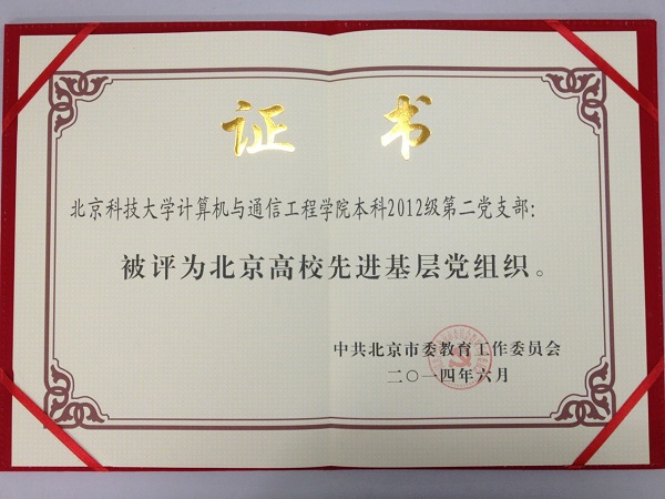 在喜迎中国共产党成立93周年之际,北京高校先进基层党组织、优秀共产党员和优秀党务工作者表彰大会6月26日在北京会议中心举行,博彩评级网 计通本12级第二党支部被评为北京高校先进基层党组织。北京市委常委、教育工委书记苟...