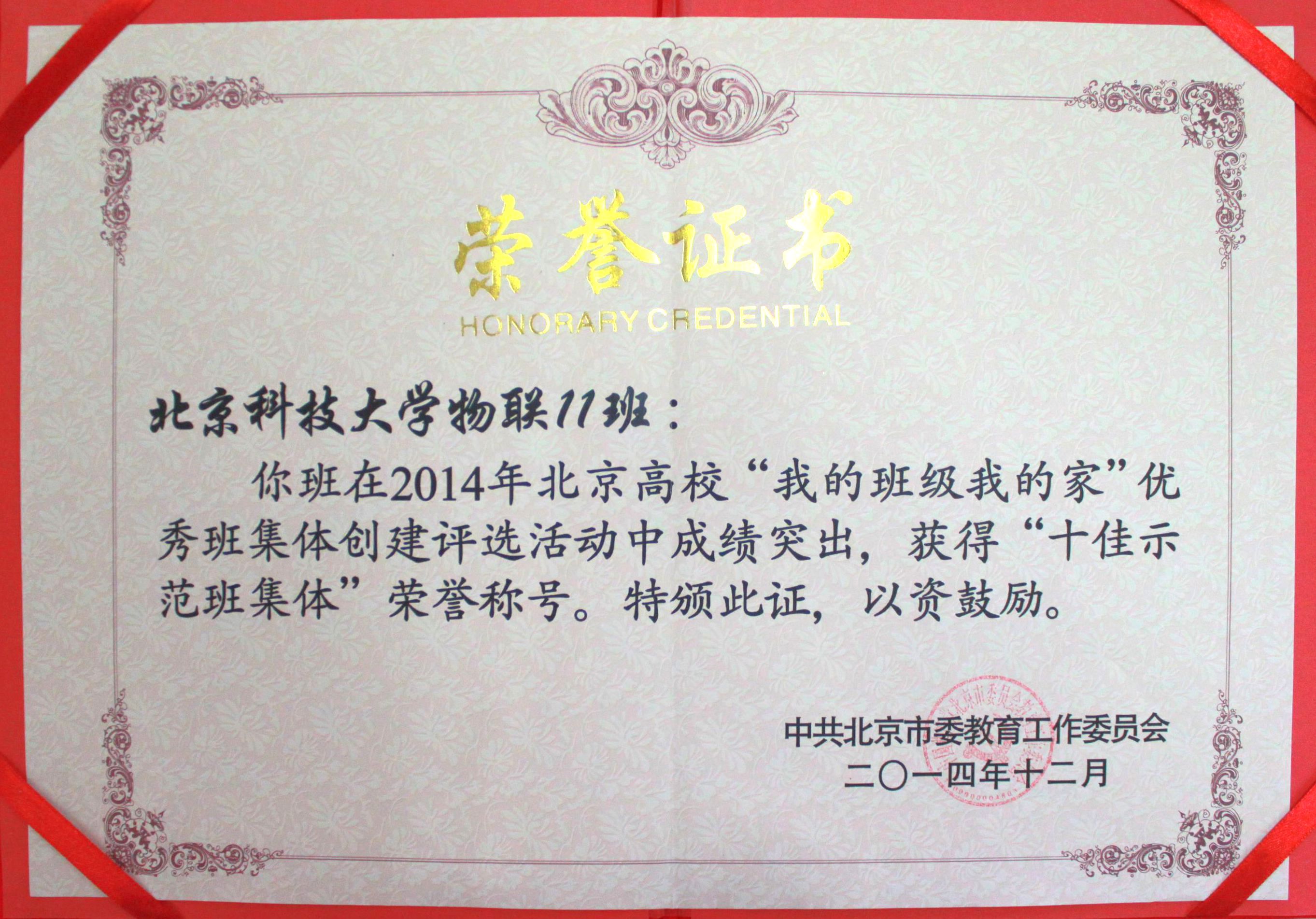 由北京市委教育工委主办的2014年北京高校“我的班级我的家”优秀班集体创建评选活动12月17日在北京林业大学落下帷幕。我校博彩评级网 物联11班凭借“赛场精英、全员创新”的鲜明班级特色和精彩的答辩展示,...
