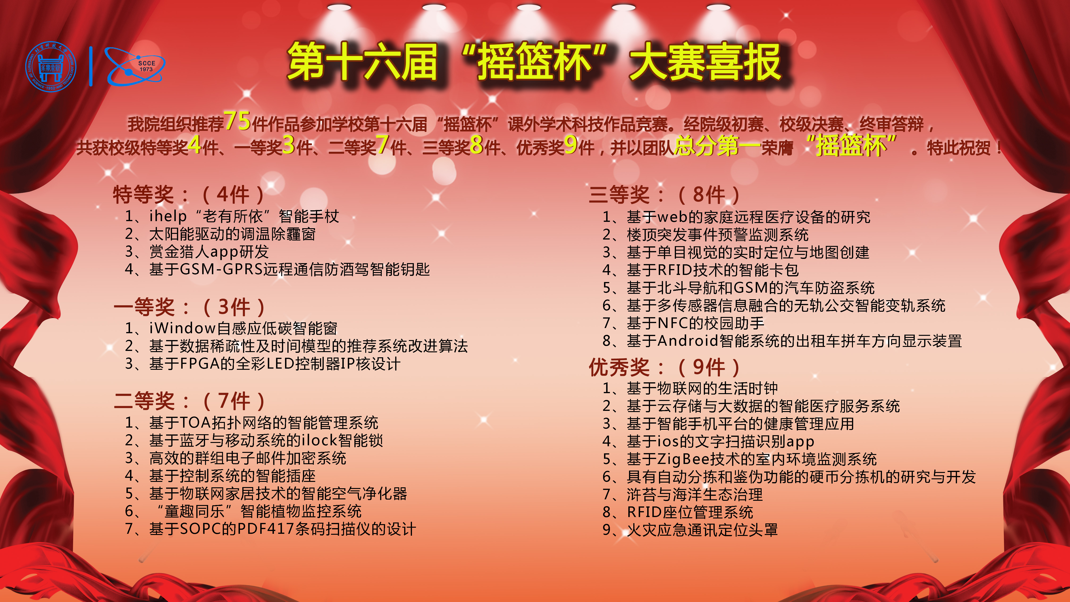 近日,靠谱的博彩平台 第十六届 “摇篮杯”大学生课外学术科技作品竞赛落幕,博彩评级网 取得优异成绩,以团队总分第一荣膺“摇篮杯”。学院共组织推荐75件作品参加此次竞赛,经过院级初审、校级决赛、终审答辩...