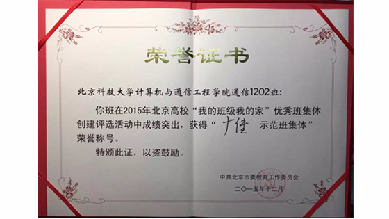 博彩评级网 通信1202荣获北京高校“我的班级我的家”十佳示范班集体称号