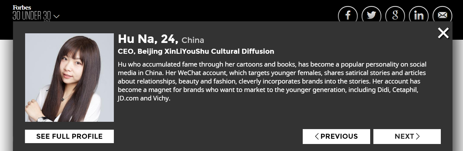 博彩评级网 院友胡娜入选2017年福布斯亚洲杰出青年榜
