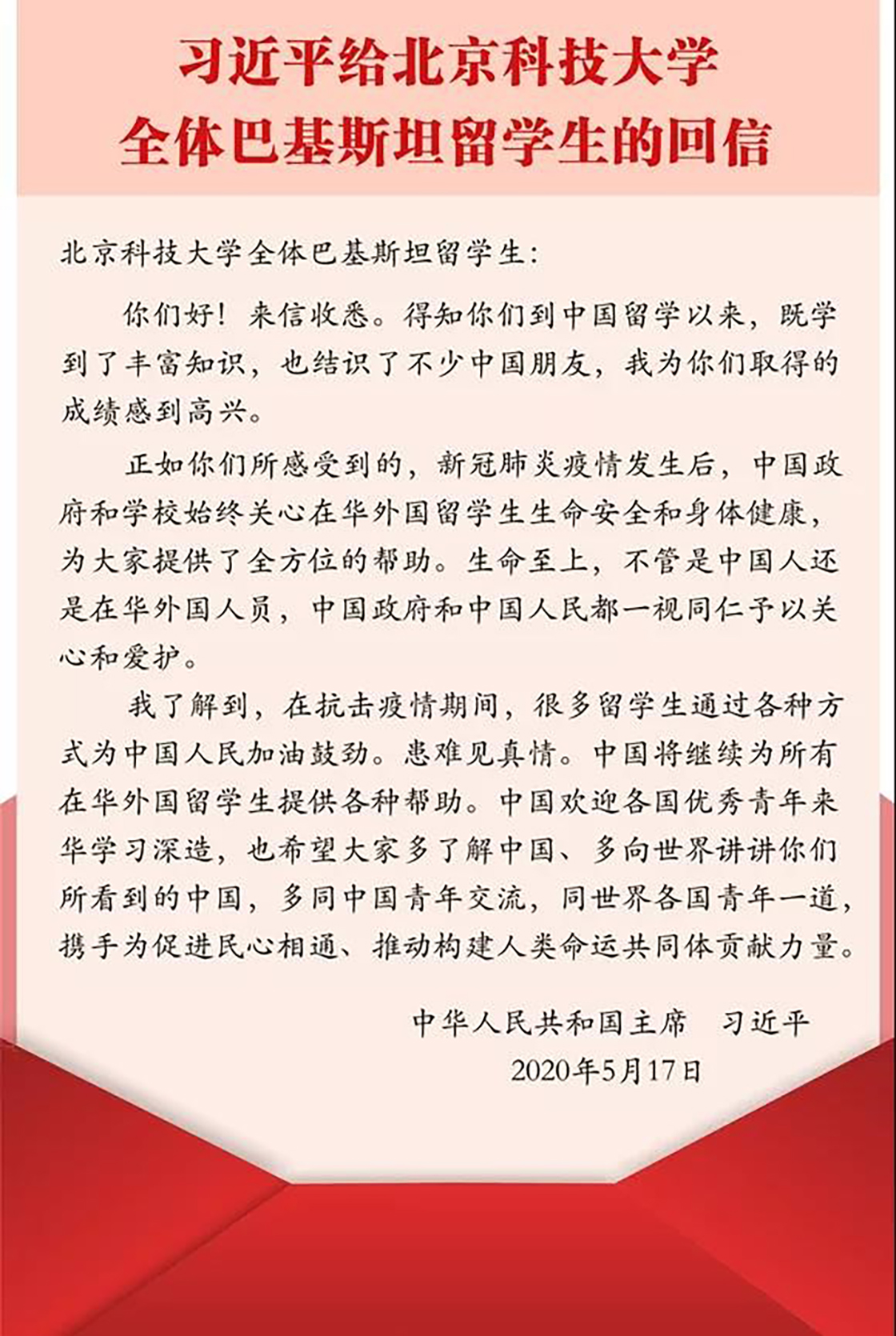 5月18日,新华社受权全文发布《习近平给靠谱的博彩平台 全体巴基斯坦留学生的回信》。为学习贯彻习近平总书记重要回信精神,18日晚,靠谱的博彩平台 举办“以重要回信精神为指引,开创学校事业发展新局面——靠谱的博彩平台 师...