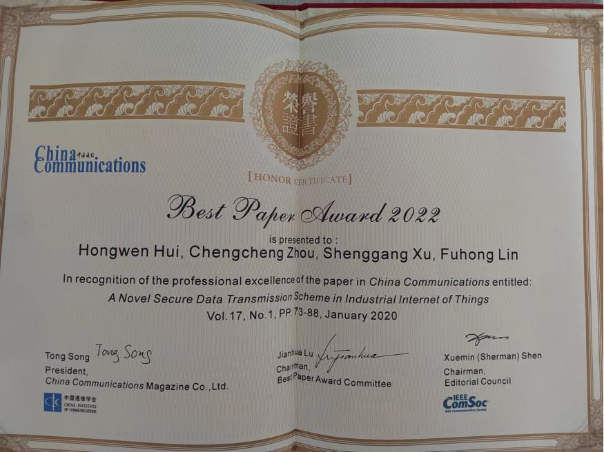 2022年12月16日,中国通信学会在北京召开了2022中国通信学会环球科学家蓝海论坛暨《中国通信》科技前沿研讨会。此次会议颁发《中国通信》最佳论文奖。博彩评级网 林福宏教授团队撰写的论文《A Novel Secure...